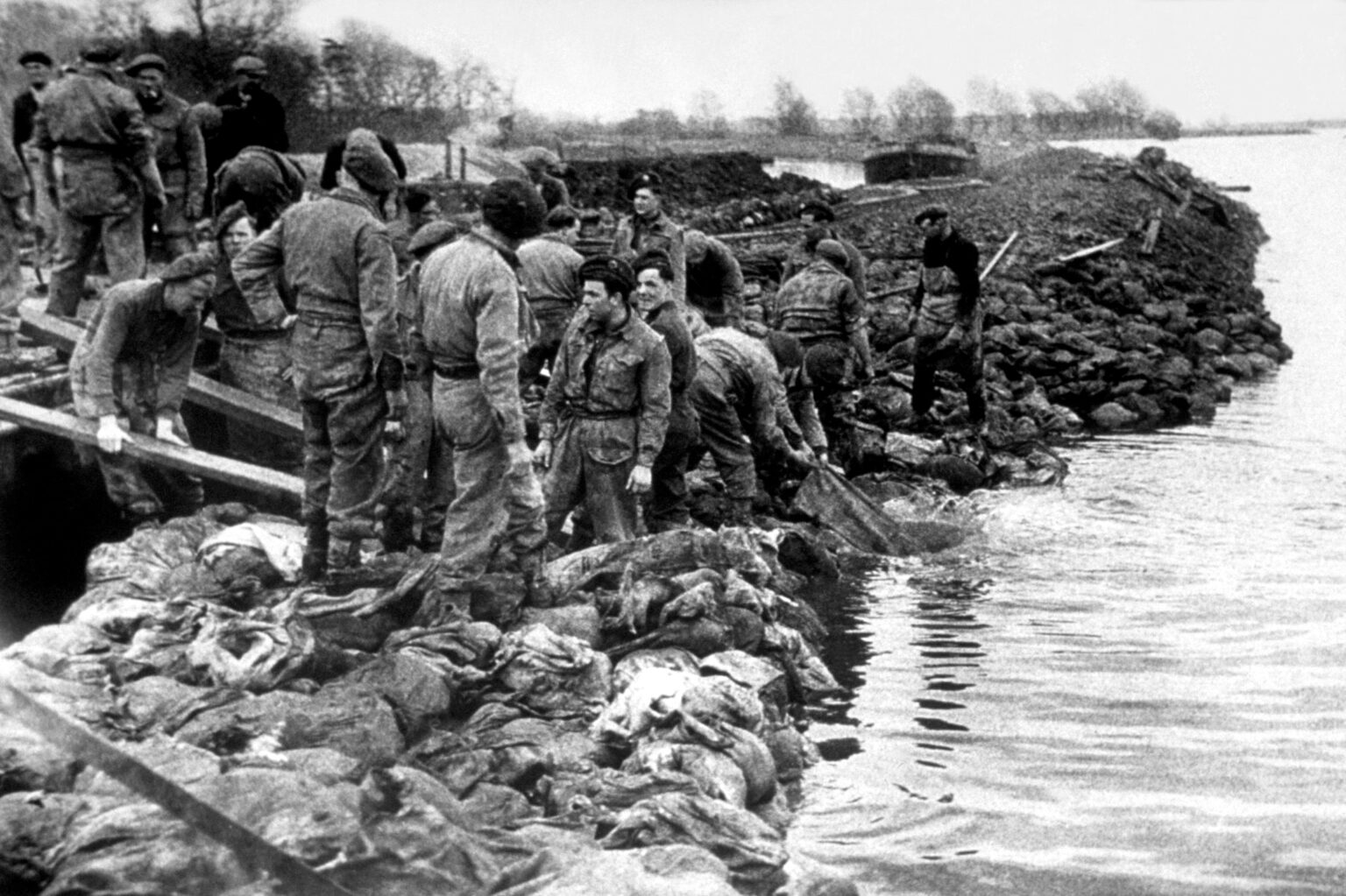 3rd May 1947: Soldiers clearing up damage caused by flooding in the Fens, a region of reclaimed marshland in eastern England. Original Publication: Picture Post – 4348 – Wanted A No Flood Policy – pub. 1947 (Photo by Charles Hewitt/Picture Post/Hulton Archive/Getty Images)