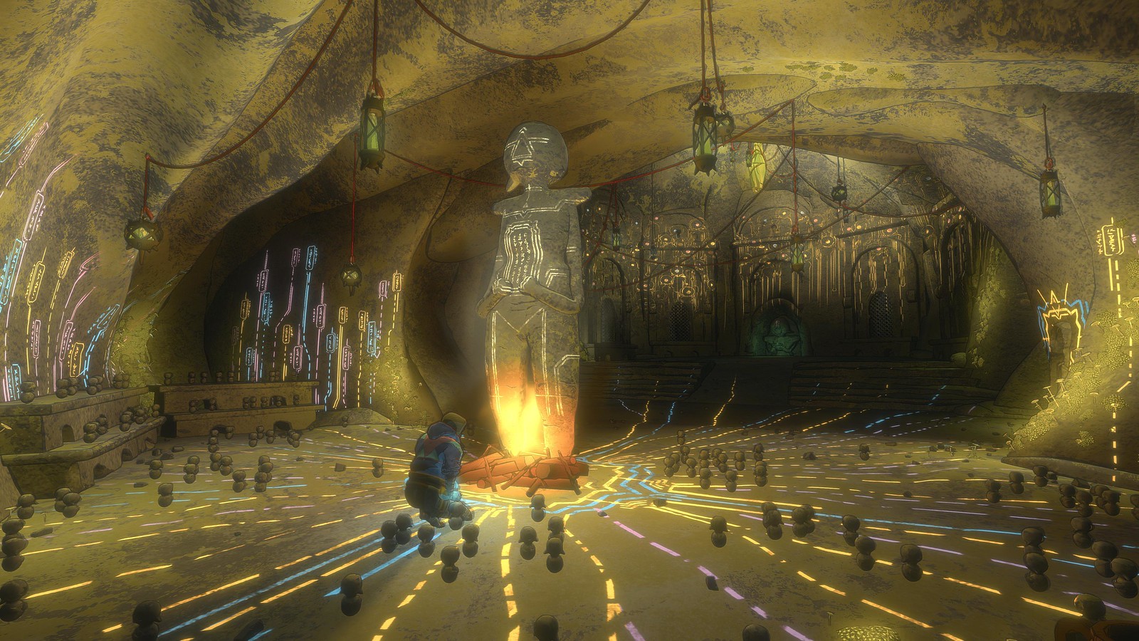 Mathieu: Cairn is a true adventure game, with an emotional and meaningful story. Even though it’s a solo ascent, Aava will meet people on the mountain and reveal more of her personal story. This happens through exchanges with those she’s left behind — Naomi, who regularly checks in on her, and her agent Chris, who’s constantly chasing after her! But also through encounters with other climbers on the mountain — those alive like Marco, and those who never made it back down. And then there’s the troglodyte civilization, or what remains of it — incredible climbers and rock carvers who lived in seclusion high in the mountains. Cairn is the story of Aava and her passion for the mountains, told through these encounters and places to discover — showing what drives humans to go beyond their limits to reach new heights.