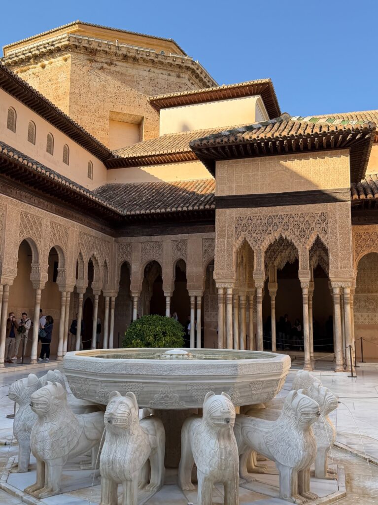 A scenic start to the morning with views from MontjuïcCatalan-style paella – extremely tasty!Gaudí’s Casa Batlló was walking distance from the hotel!The stunning colors of La Sagrada FamíliaIntricate details can be seen up close all over La Sagrada FamíliaThe bell tower of Málaga CathedralFried anchovies – Málaga’s specialty!Walking through Málaga’s stunning city centerOur amazing guide walking us through Picasso’s artworkPicasso’s “Mujer con los brazos abiertos”A breathtaking view of Granada’s rugged sceneryTaking in the beautiful fountains of the Alhambra PalaceWalking through the Moorish architecture of the Alhambra PalaceStunning sunset from the Hotel Alhambra PalaceCórdoba’s La MezquitaWandering through the picturesque alleys of CórdobaJamón ibérico at our breakfast buffetOutside the Royal Palace of Madrid