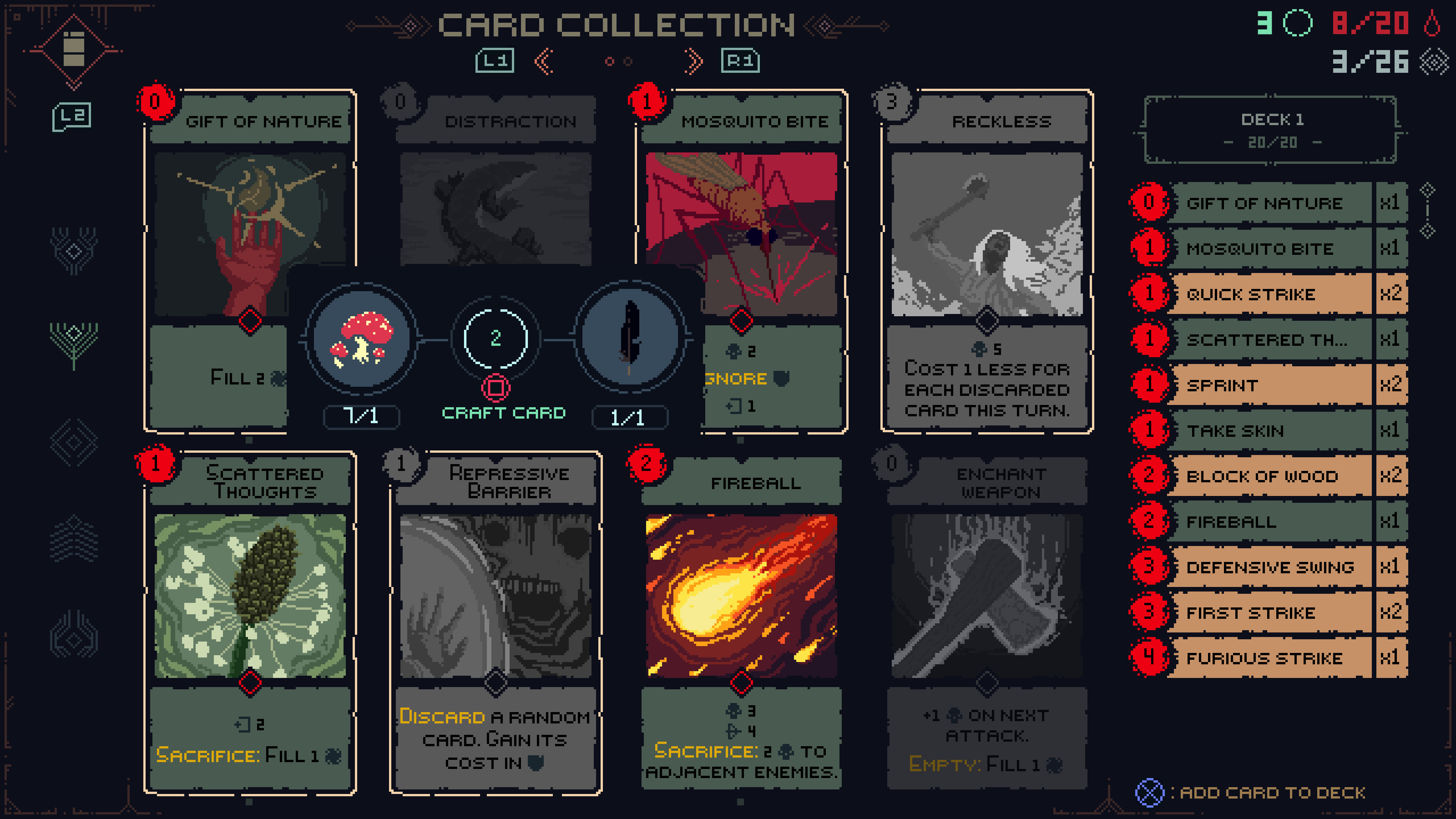 At its core, Death Howl began as a prototype that I made as a school project back in 2015 after playing the unique and brilliant game called Dream Quest. I’ve always been inspired by Magic: The Gathering and the idea of traversing a world to collect materials for crafting power. Our initial goal was to create an alternative to the traditional roguelite deckbuilder – something that traded linear, “always-start-from-beginning” runs for a free-roaming open world.