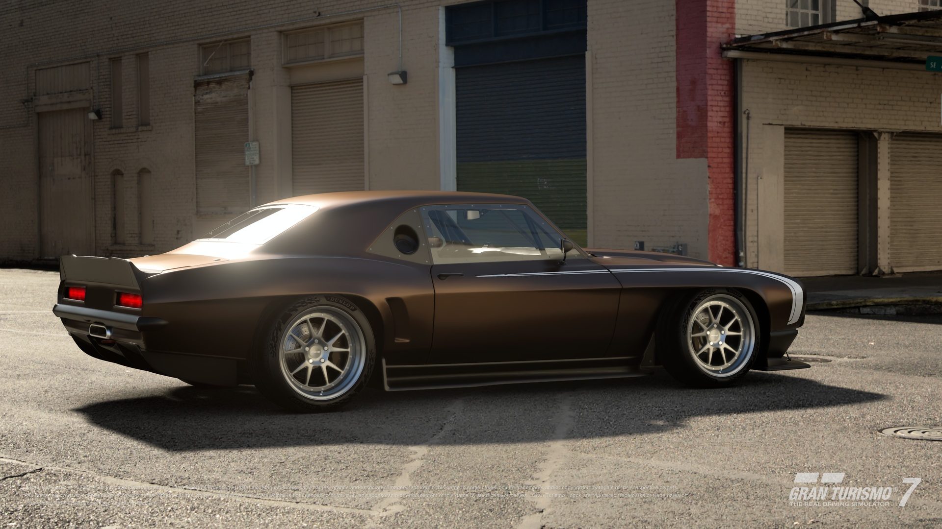 Created by Gran Turismo, the Camaro 1969 Race‑Mod is a modern reinterpretation of that original Z28. It preserves the spirit of classic Trans‑Am racing through a low, aggressive stance, while incorporating elements of the contemporary restomod movement popularized at events like SEMA. Chrome trim has been removed and replaced with carbon‑black components, while a wide‑mouth front bumper, pronounced ducktail spoiler, and centre‑exit exhaust sharpen the exterior.